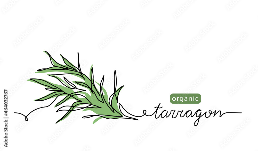 Tableau sur toile Tarragon, estragon leaves simple vector sketch drawing