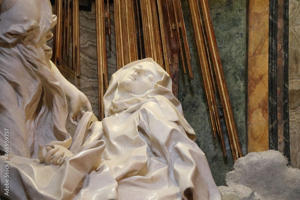 The Ecstasy of Saint Teresa of Avila Bernini Sculpture Detail at the Santa Maria della Vittoria Church in Rome, Italy