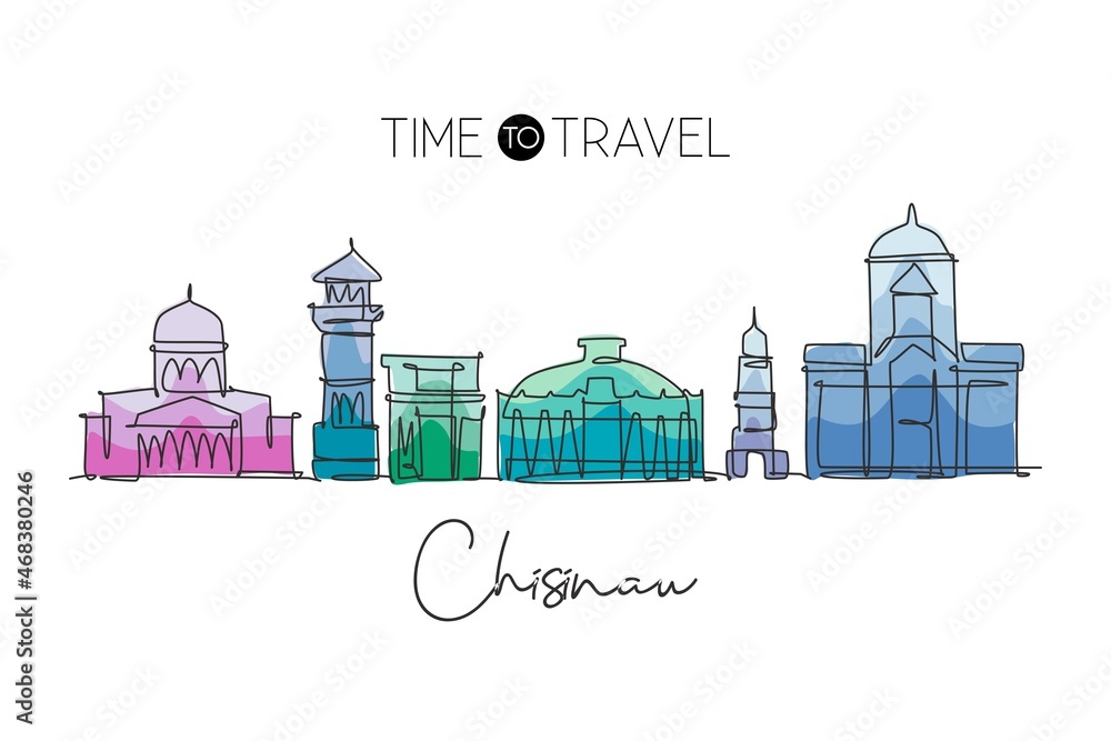 Tableau sur toile One single line drawing of Chisinau city skyline, Moldova