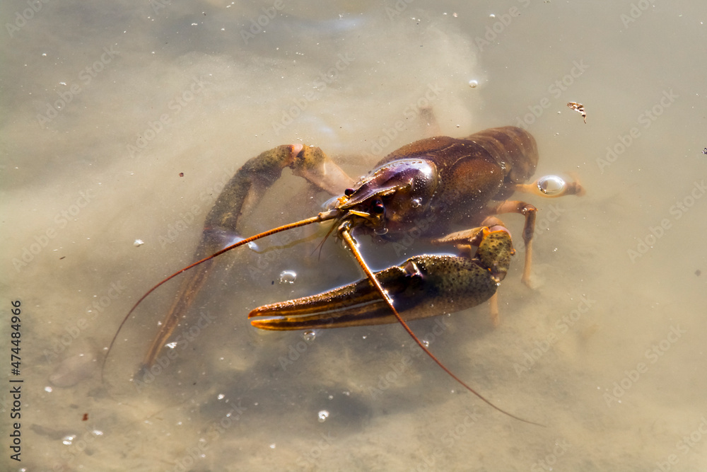 Tableau sur toile Danube or Galician crayfish is swimming in the water