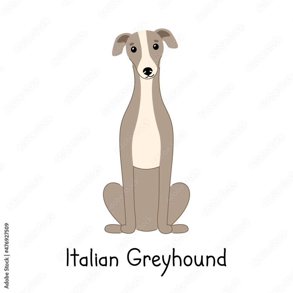 Tableau sur toile Dog of breed Italian Greyhound sits isolated on a white background