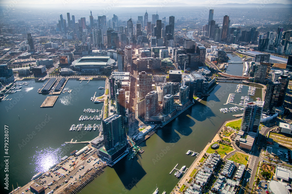 Tableau sur toile MELBOURNE, AUSTRALIA - SEPTEMBER 8, 2018: Aerial city skyline from helicopter