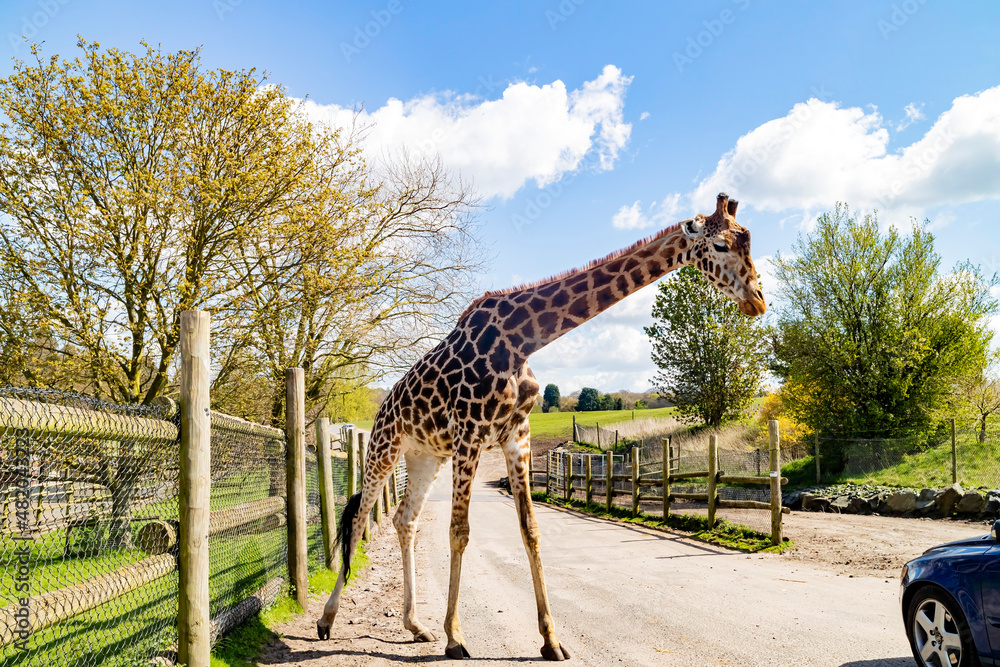 Tableau sur toile Close up shot of Giraffe walking in the beautiful West Midland Safari Park