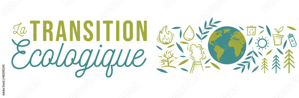 Tableau sur toile Bannière - La transition écologique - Titre et pictogrammes autour de la nature