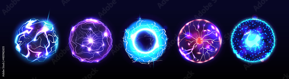 Tableau sur toile Electric energy spheres with lightning, electricity powerful natural elements