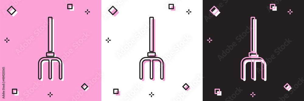 Tableau sur toile Set Garden pitchfork icon isolated on pink and white, black background