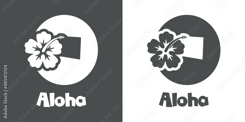 Tableau sur toile Logotipo texto Aloha con letra O en tipografía tiki con silueta de flor de hibis
