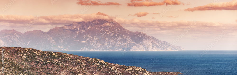 Tableau sur toile Panorama of the famous sacred Mount Athos in Greece