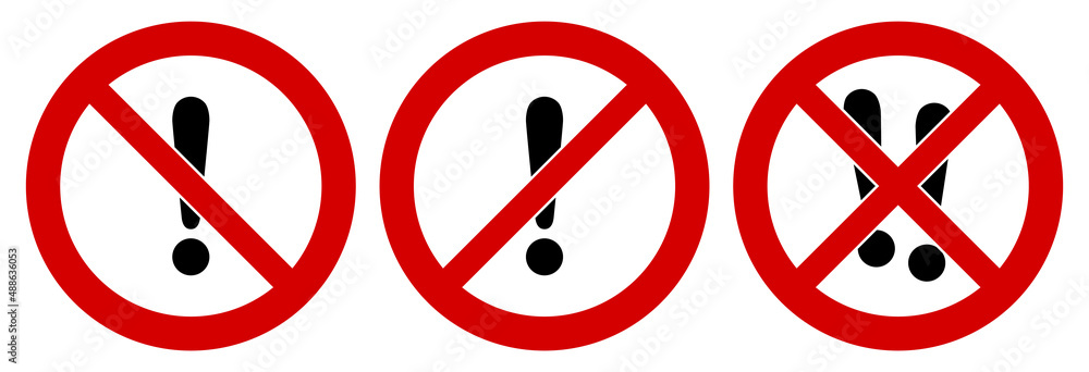 Tableau sur toile Exclamation mark icon in red crossed circle, doublecrossed sign as well