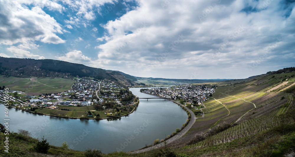 Tableau sur toile Mehring, Rhineland- Palatinate - Germany - View over the village of Mehring wit