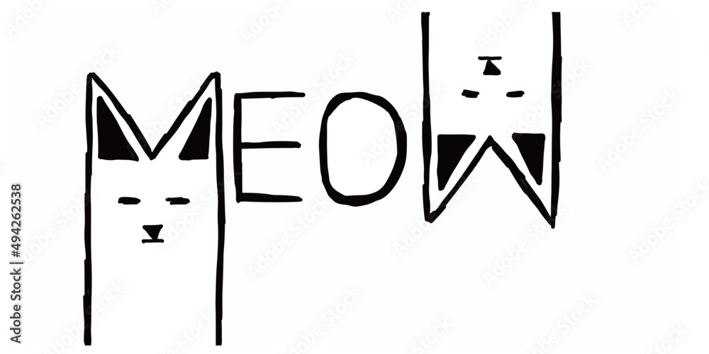 Tableau sur toile Artistic simple vector modern illustration of cats (hand drawn, sketch) with meo