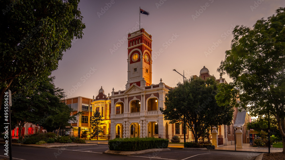 Tableau sur toile Toowoomba, Queensland, Australia - City Hall building illuminated at night