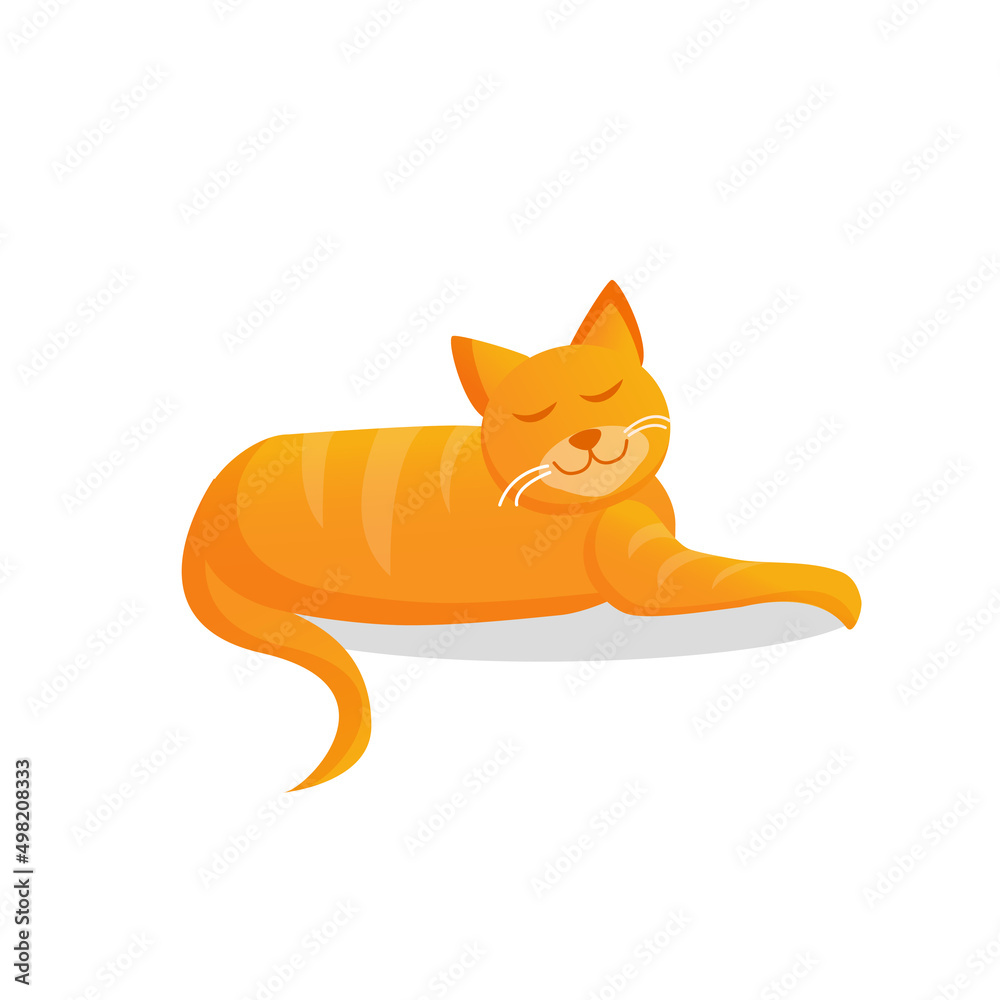 Tableau sur toile Ginger cute cat lies on an isolated background