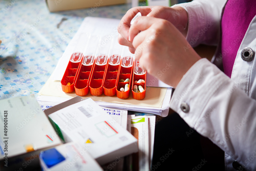Tableau sur toile Nurse preparing the pillbox for her patient.