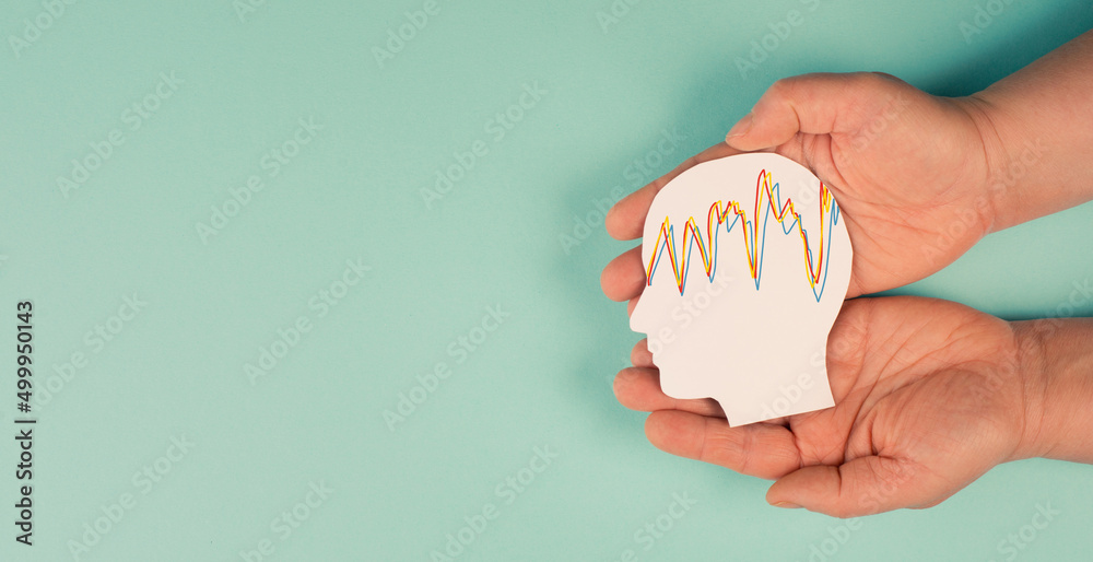 Tableau sur toile Alzheimer and epilepsy disorder, brain waves, holding a head in the hands, menta