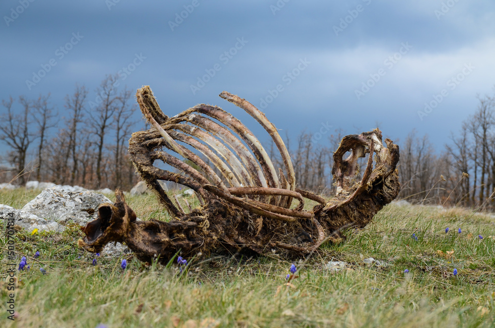 Tableau sur toile Animal carcass lies in nature