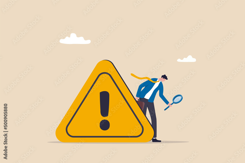 Tableau sur toile Incident management, root cause analysis or solving problem, identify risk or critical failure concept, businessman with magnifier monitor and investigate incident with exclamation attention sign