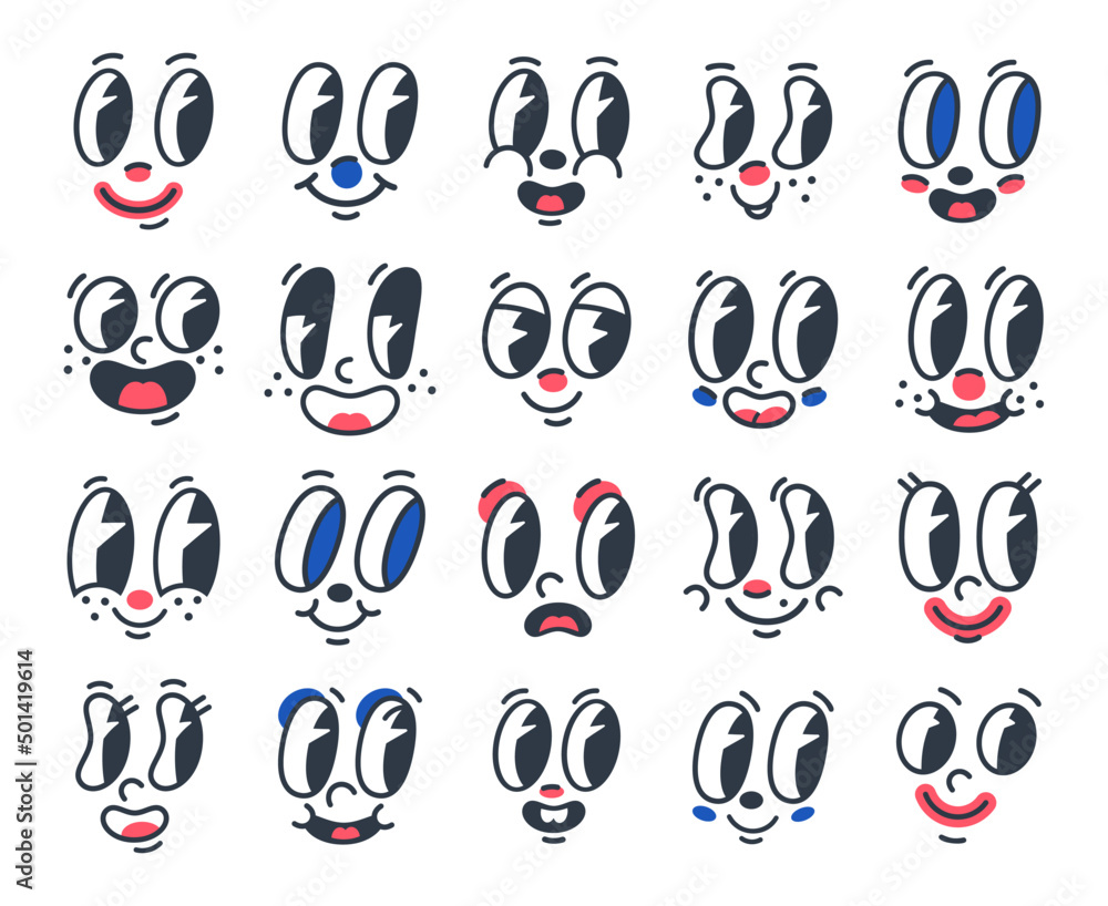 Tableau sur toile Retro cartoon funny faces, 30s comic caricature mascot emotions