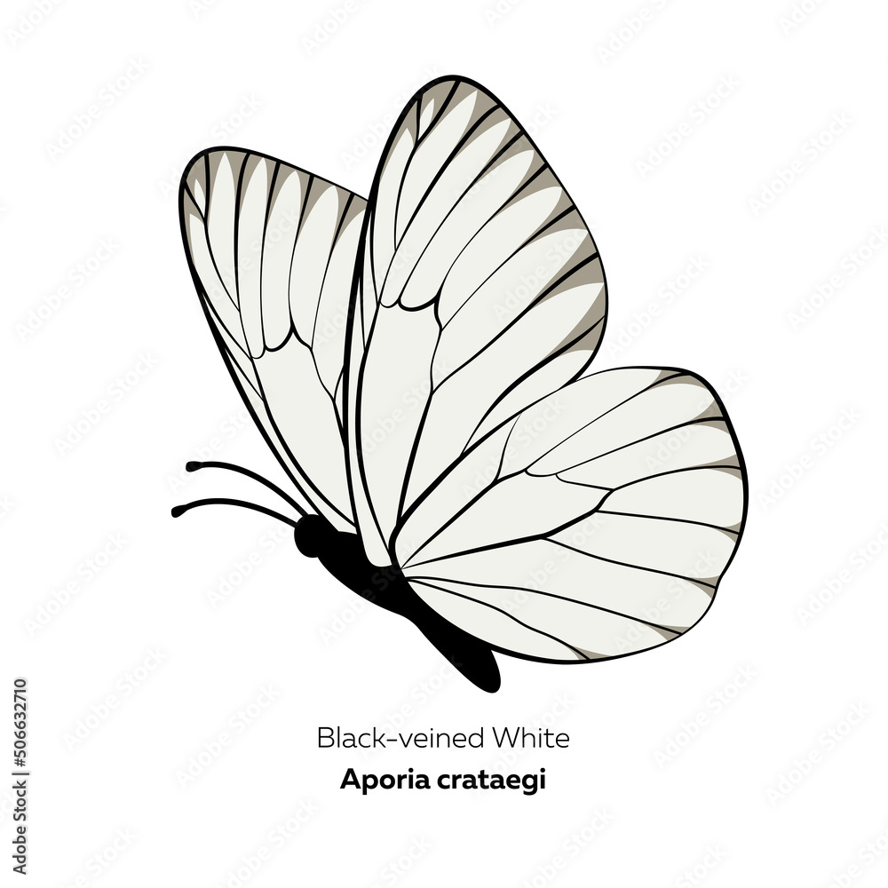 Tableau sur toile Black-veined white butterfly, Aporia crataegi, vector illustration