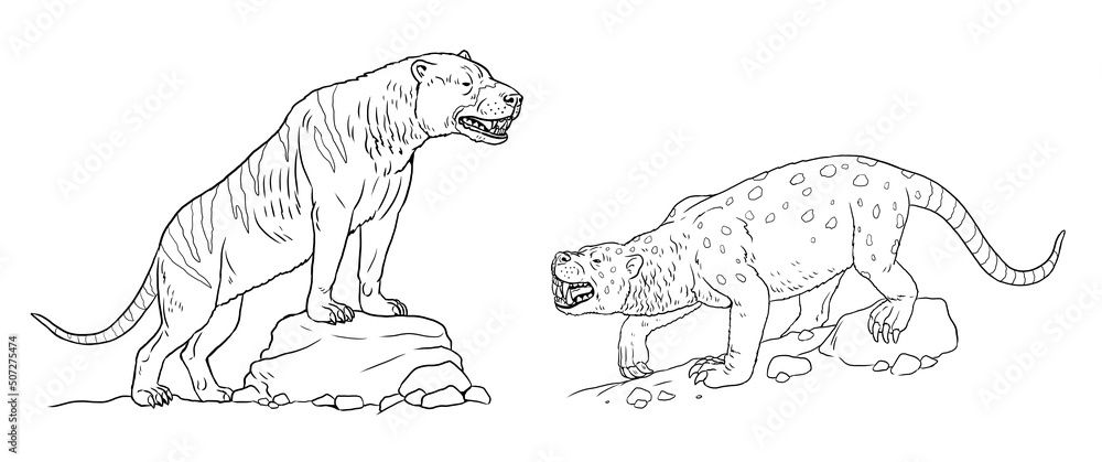 Tableau sur toile Prehistoric predators - megistotherium and sarkastodon