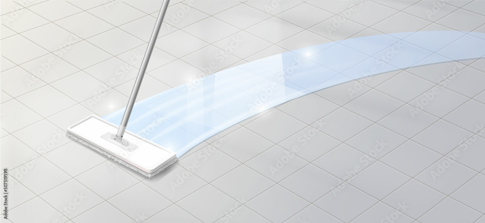 Tableau sur toile Mop cleaning dirty tiled floor to shiny