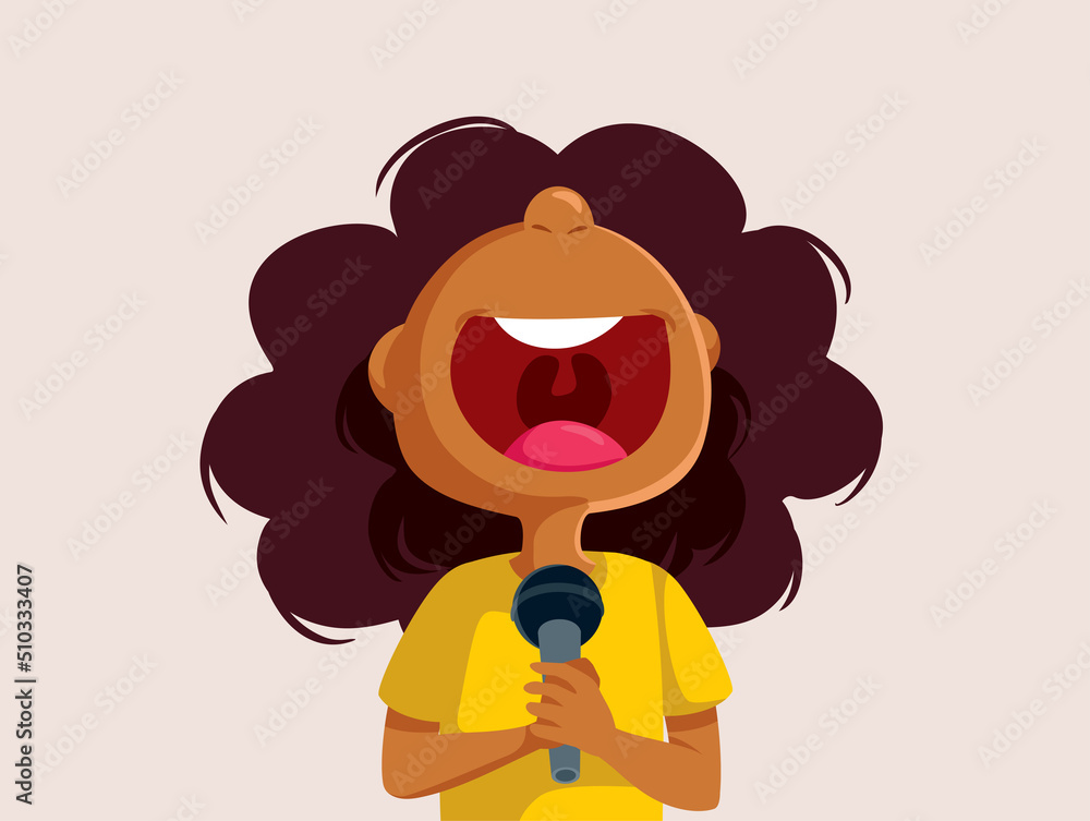 Tableau sur toile Little Girl Singing Loud Vector Funny Cartoon Illustration