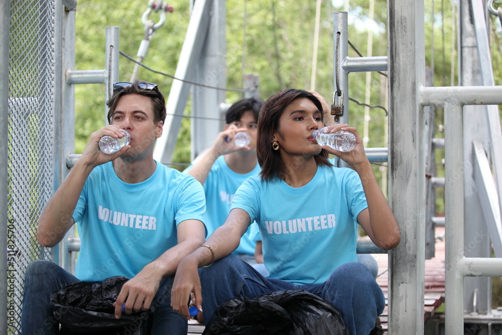 Tableau sur toile Happy volunteer working , volunteering, charity, cleaning, people and ecology co