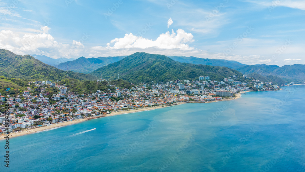 Tableau sur toile Puerto Vallarta City with Blue Sea and Mountains