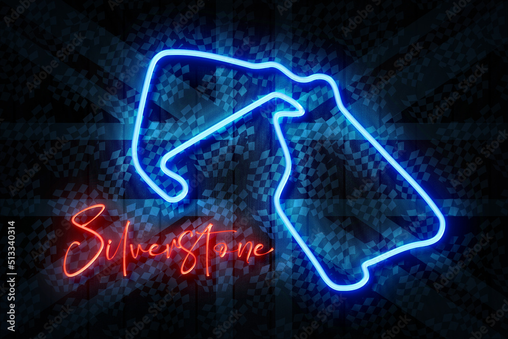 Tableau sur toile Silverstone Red and Blue Neon Sign on a Dark Checkered decorated Wooden Wall 3D illustration