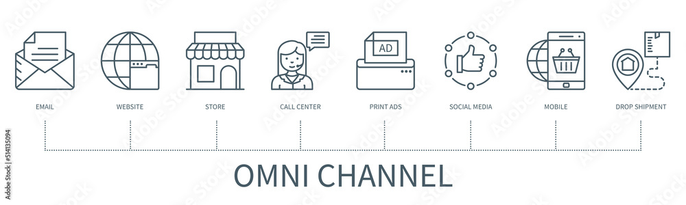 Tableau sur toile Omni channel infographic in minimal outline style