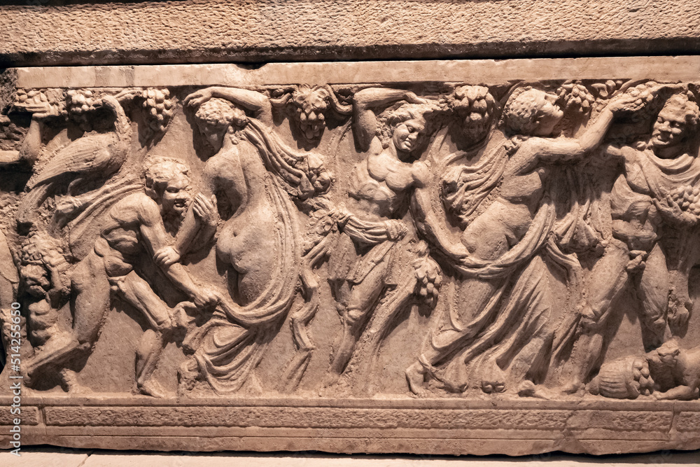 Tableau sur toile Bas-relief on the sarcophagus depicting a bacchanal led by the god of fun and wi