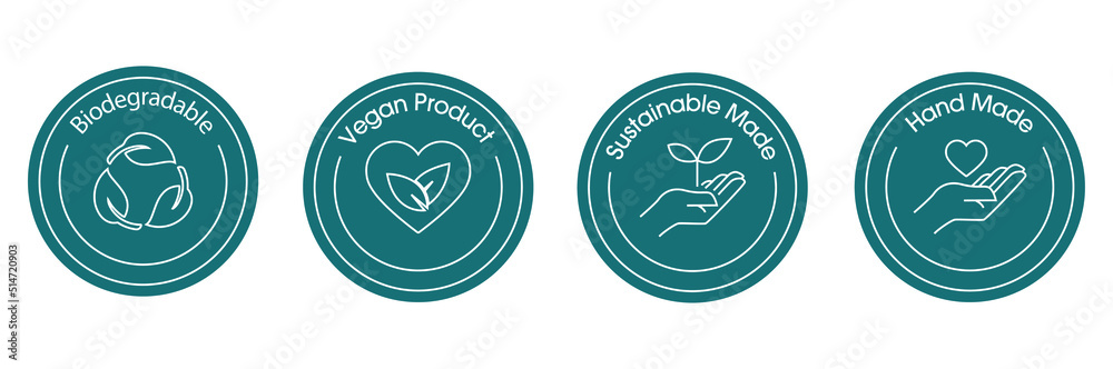Tableau sur toile biodegradable, vegan product, sustainable made, hand made icon set vector illust
