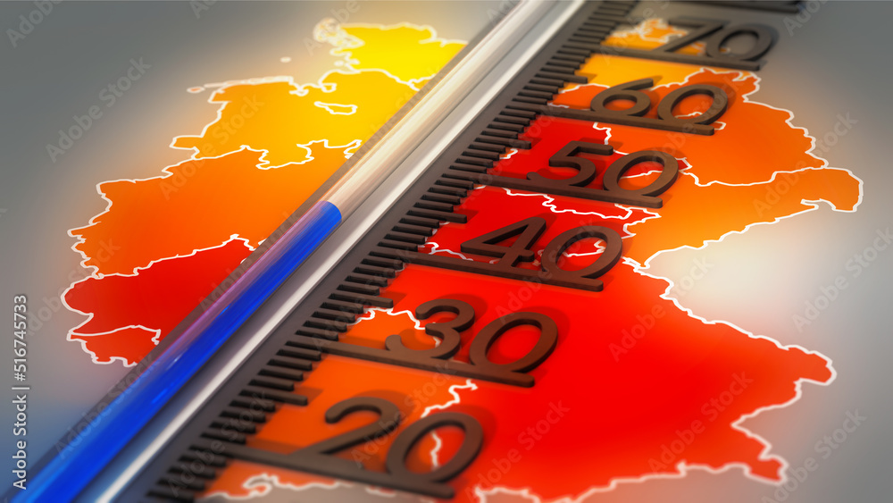 Tableau sur toile Thermometer auf Temperaturkarte von Deutschland