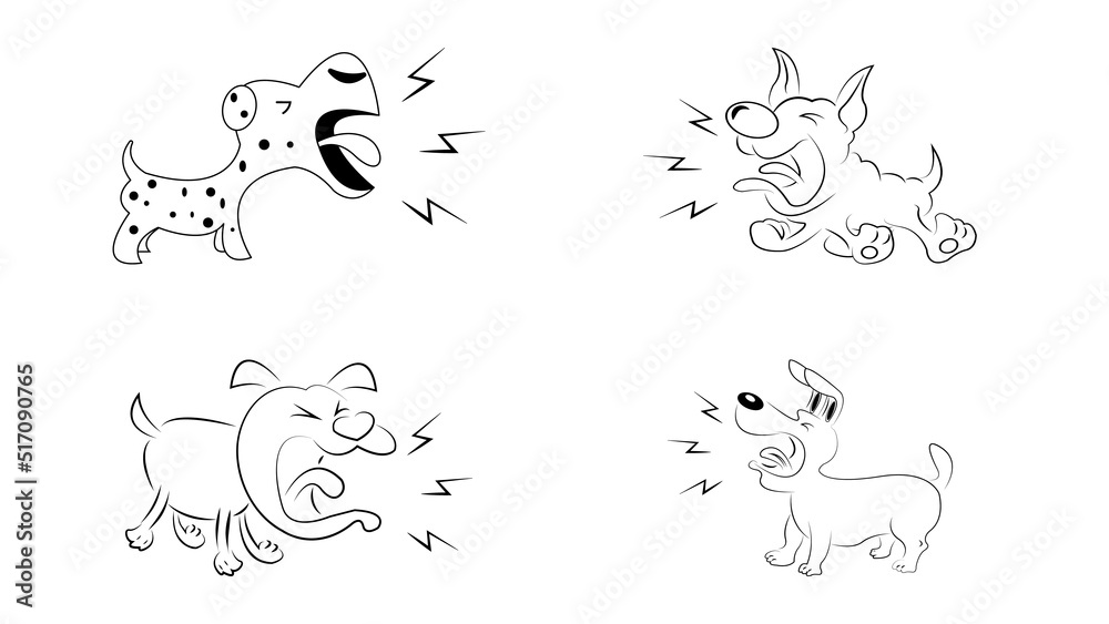 Tableau sur toile Set Of Cartoon Dog Barking Clipart Black And White