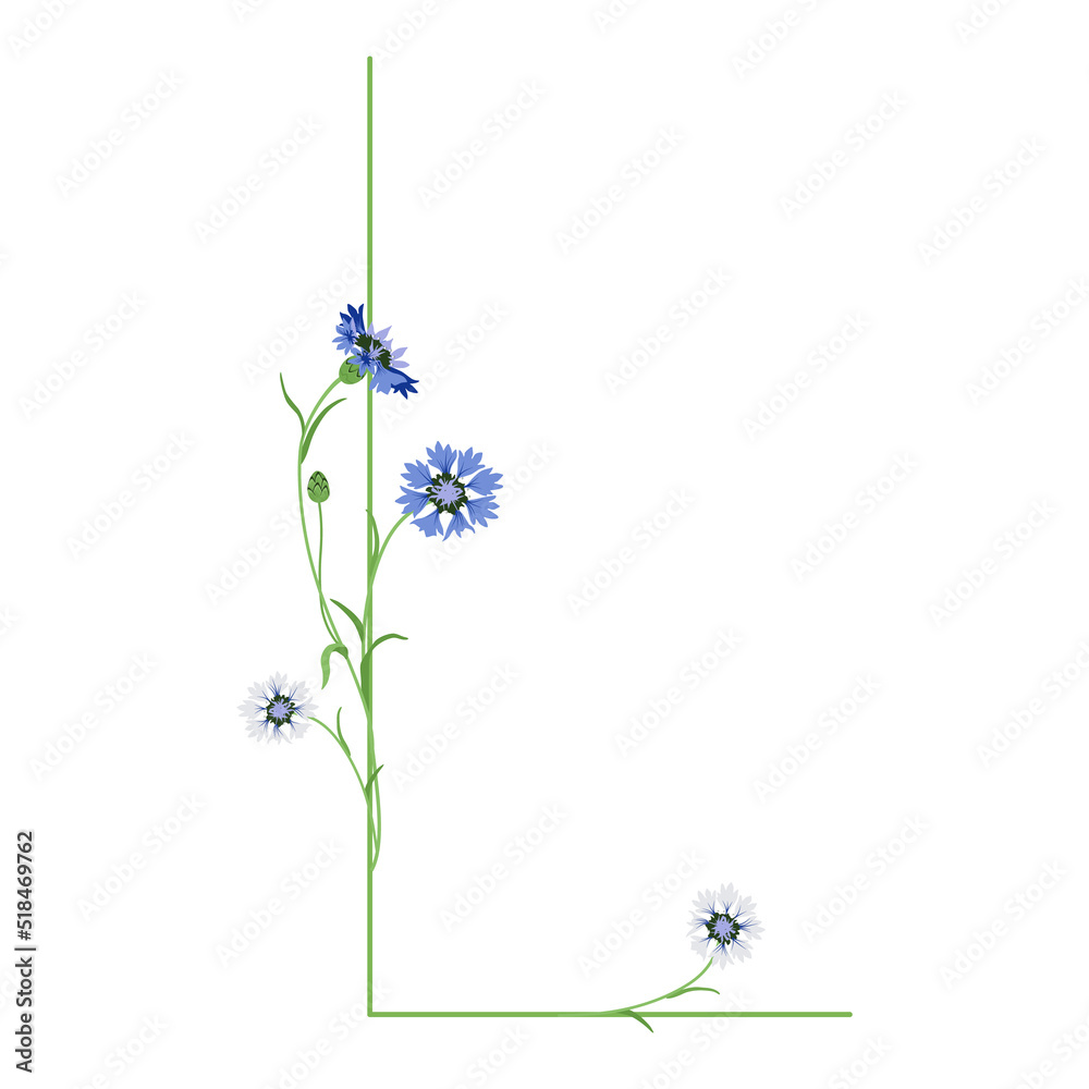 Tableau sur toile Beautiful letter L with blooming branches of cornflower or knapweed plant (Centaurea)