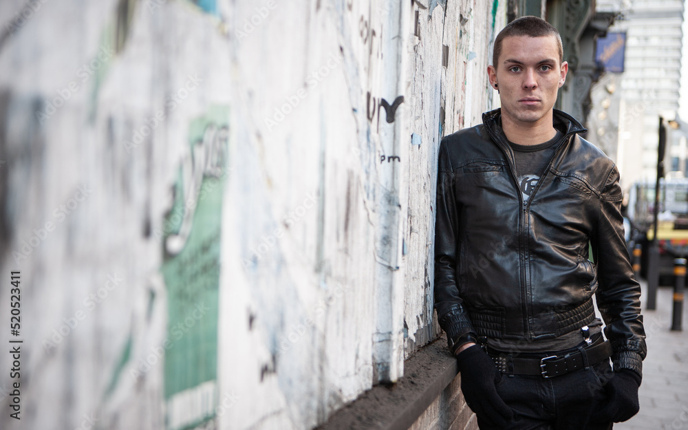 Urban attitude: street life. A confident stance from an alternative lifestyle character; from a series of images with the same model.