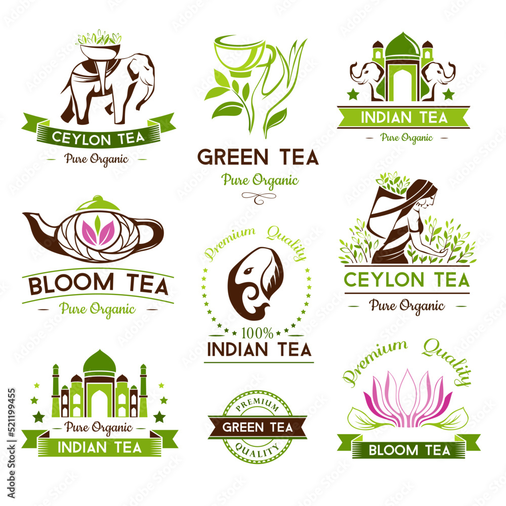 Tableau sur toile Green, ceylon and bloom tea emblems.
