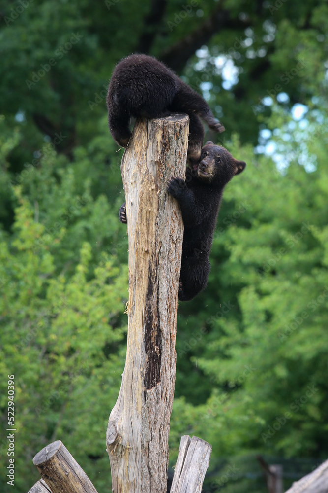 Tableau sur toile Deux oursons sur une branche au parc animalier de Sainte-Croix, en Moselle