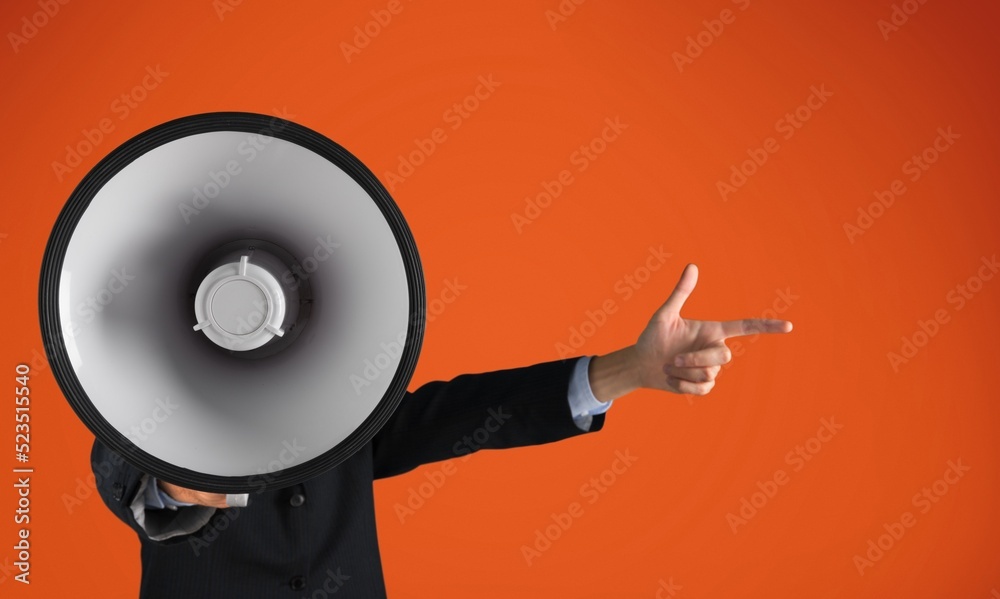 Tableau sur toile Young man hold scream in megaphone announces discounts sale