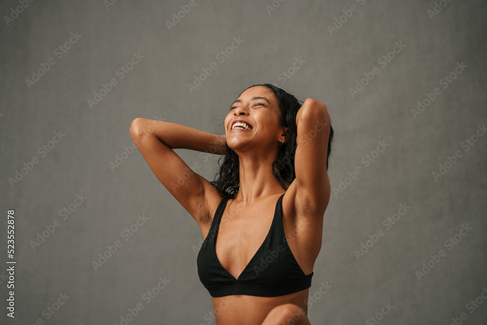Tableau sur toile Very excited African American female putting her hands through her hair