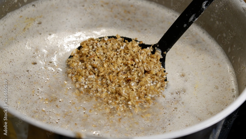 Tableau sur toile Malt brassé pendant le processus de brassage de la bière