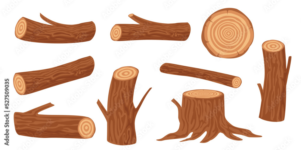 Tableau sur toile Collection set of cartoon isolated wood timber objects