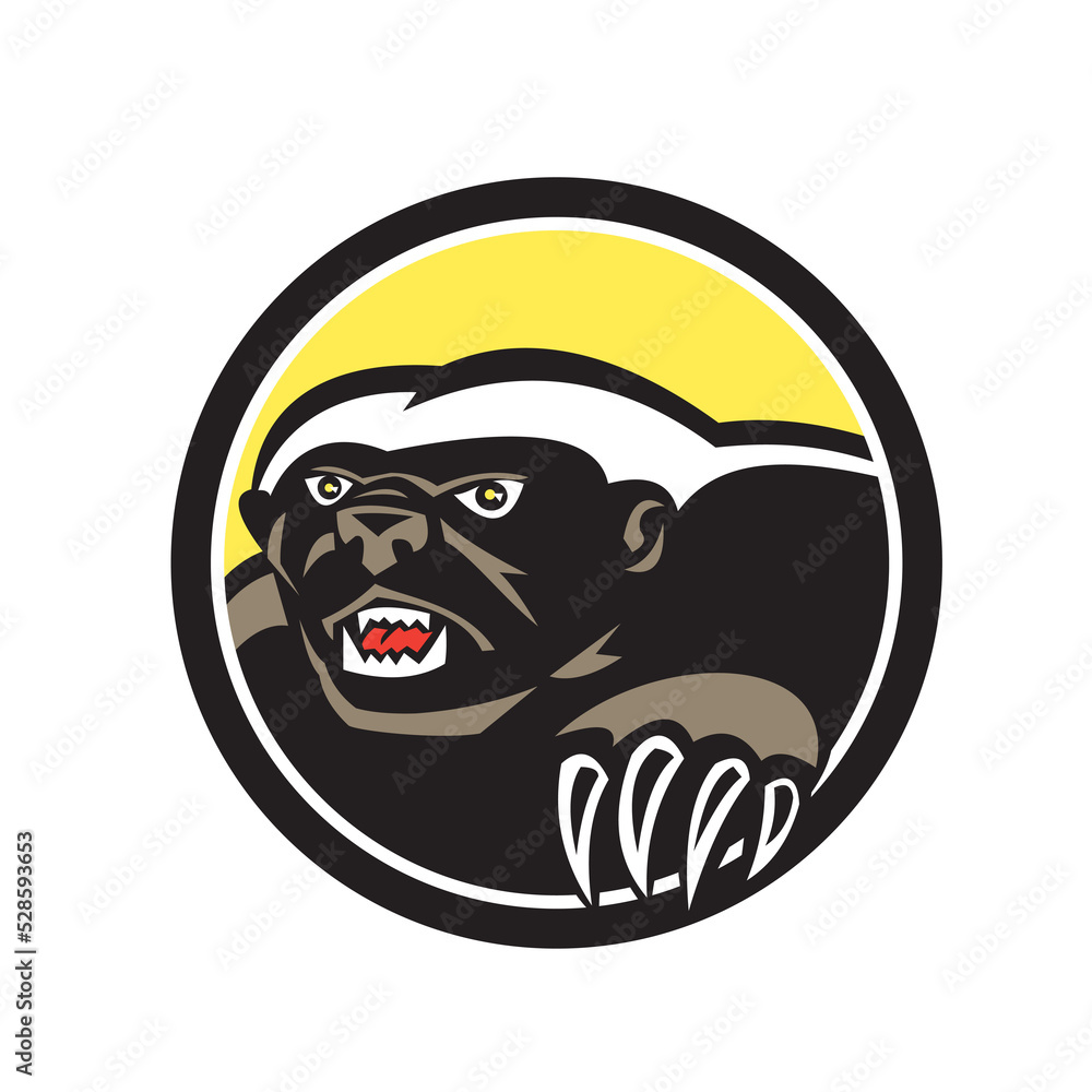 Tableau sur toile Honey Badger Claws Side Circle Retro