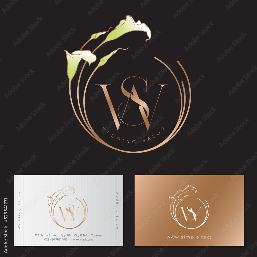 Tableau sur toile Letter S and Letter W in rounded frame with lilies