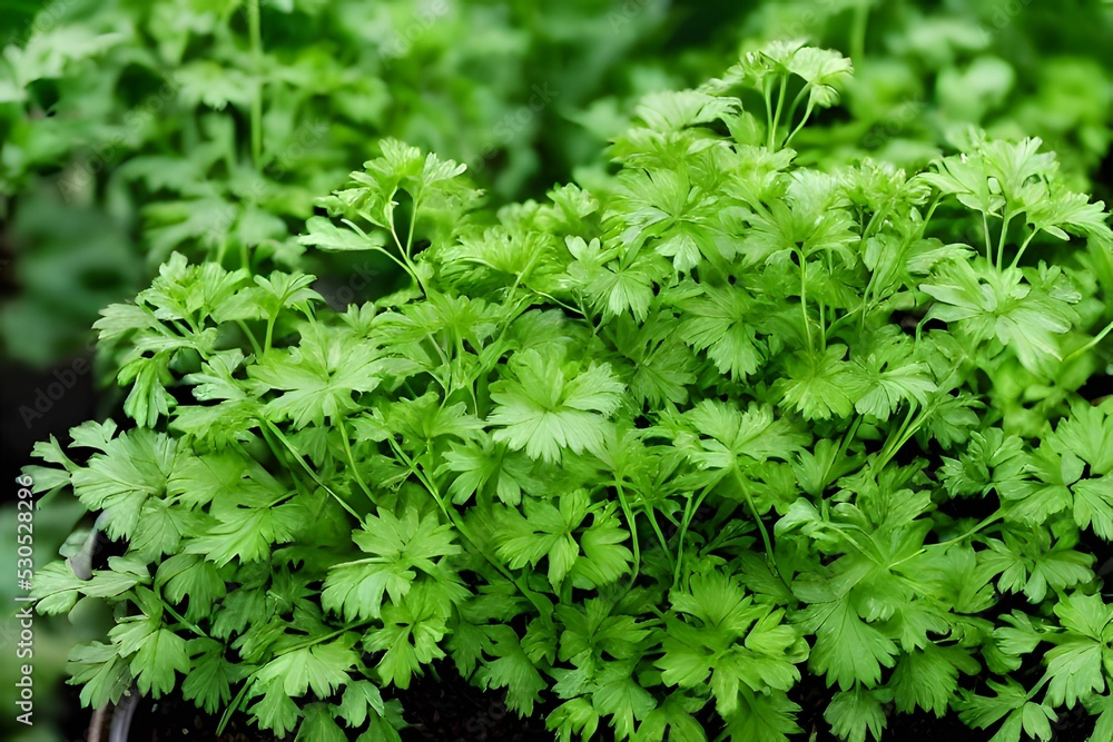 Tableau sur toile Closeup shot of bright green cilantro growing on a farm