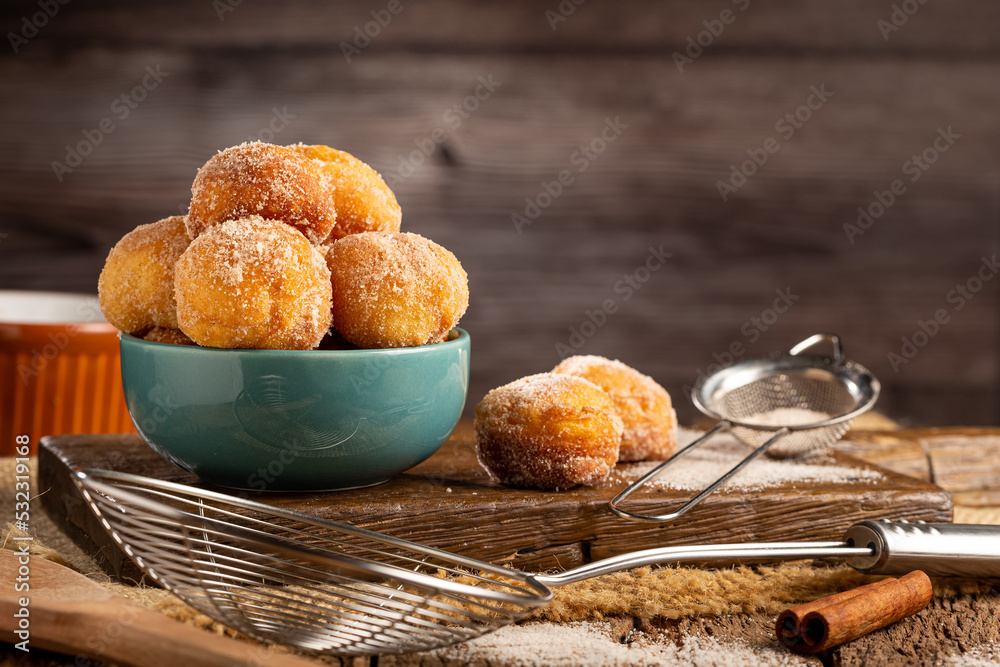 Tableau sur toile Bowl with rain cookies. In Brazil known as bolinho de chuva.