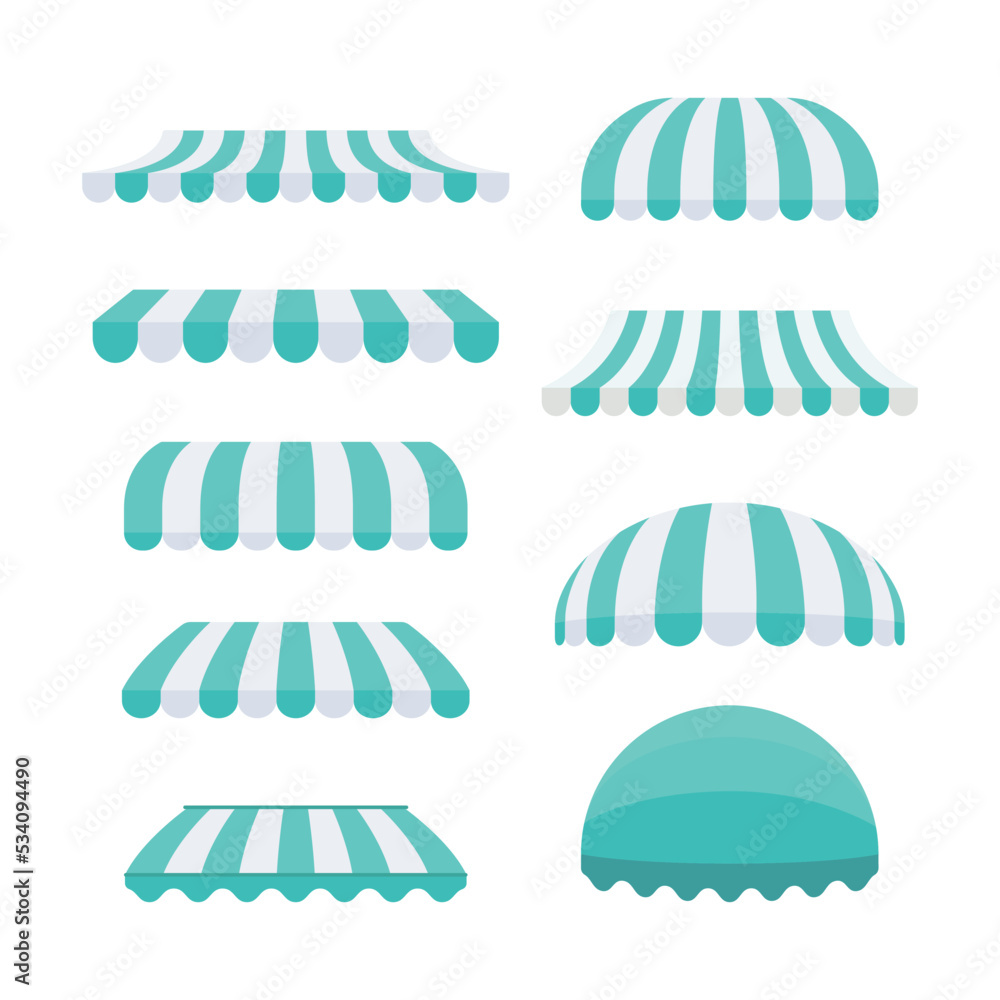 Tableau sur toile Tosca and white sunshade Outdoor awnings for cafe and shop window vector set iso