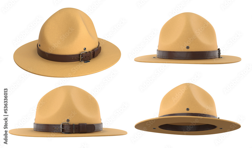 Tableau sur toile Collection Scout hat, Ranger hat, sand-colored campaign hat with leather belt, 3