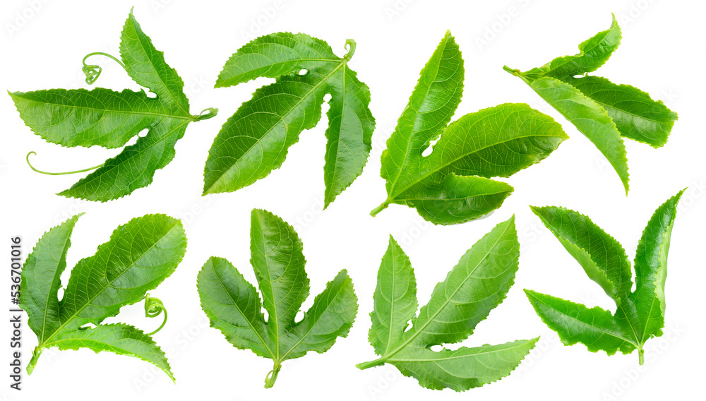 Tableau sur toile Set of passiflora or passion fruit leaves on white background