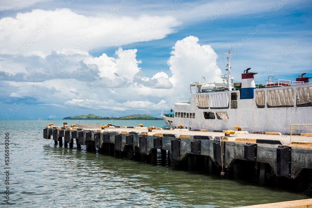Tableau sur toile Ubay, Bohol, Philippines - A typical monohull RoRo ship docked at the port to cross to Leyte